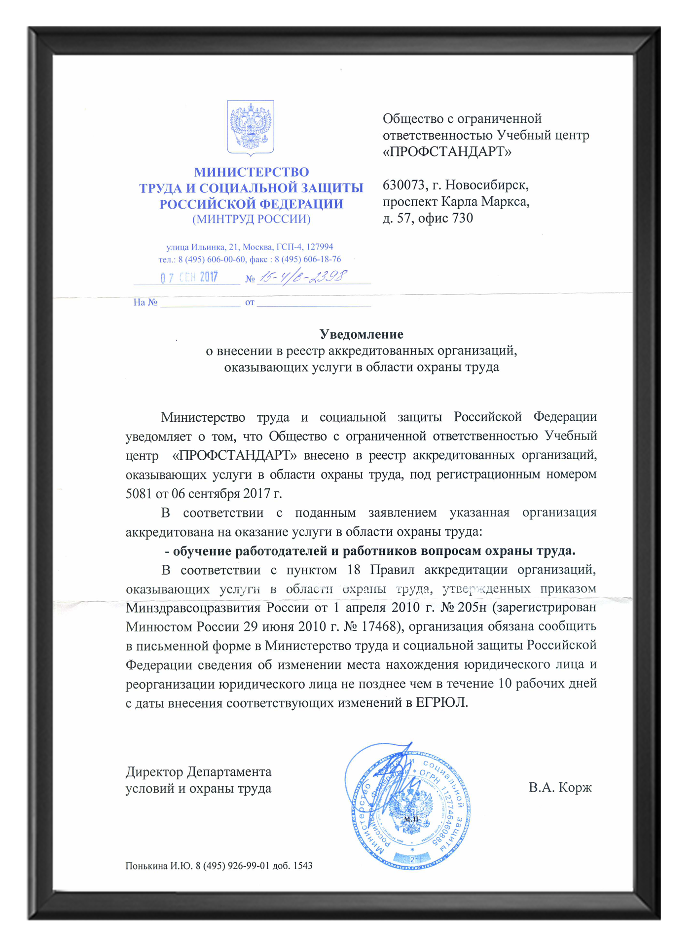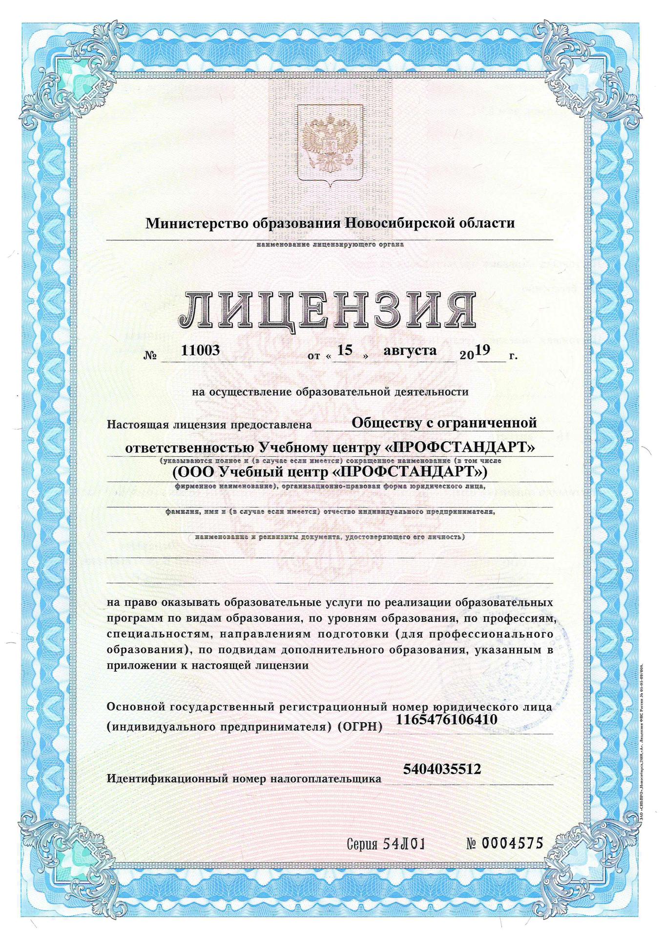 Любой учебный центр должен был аккредитован в Министерстве труда и иметь лицензию на осуществление образовательной деятельности в области охраны труда. Наш Учебный центр «Профстандарт» аккредитован и имеет лицензию №11003 от 15 августа 2019 г. (предыдущая лицензия №10294 от 22 мая 2017г.). Информацию о нас Вы можете получить в любом источнике по номеру налогоплательщика – 5404035512.